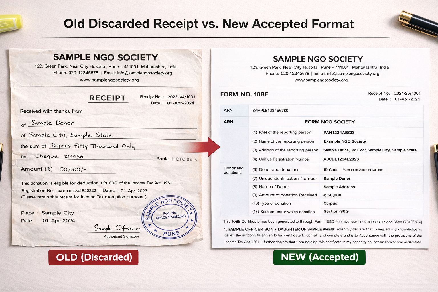 Understand the latest 80G receipt format changes introduced in 2022. Learn about Form 10BD, Form 10BE, and how NGOs can stay compliant.